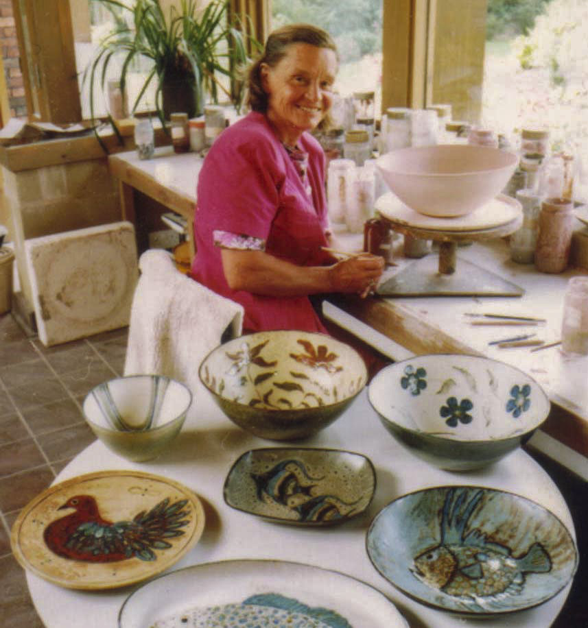 I was born in Switzerland. After completing my education I went to Rome to study painting and ceramics. I made hand built earthenware pots decorated with bright abstract designs. On marrying and moving to England, I was unable to find similar materials and changed to stoneware thrown pots. Recently I have included slip cast stoneware dishes suitable for domestic use. I particularly enjoy decorating and experimenting with glazes. Currently my designs are drawn from nature, animal birds fish and flowers. I feel pots are not just for decoration but should be used.